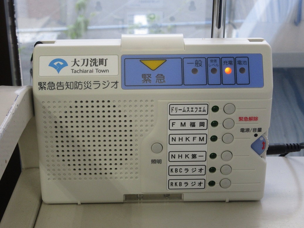 災害情報伝達手段拡充のため、ドリームスエフエム放送株式会社と連携し、緊急時に自動で起動、割り込みを行い、町民の皆さまへいち早く正確に緊急情報を届ける「緊急告知防災ラジオ」の販売と無料貸出しをしています。