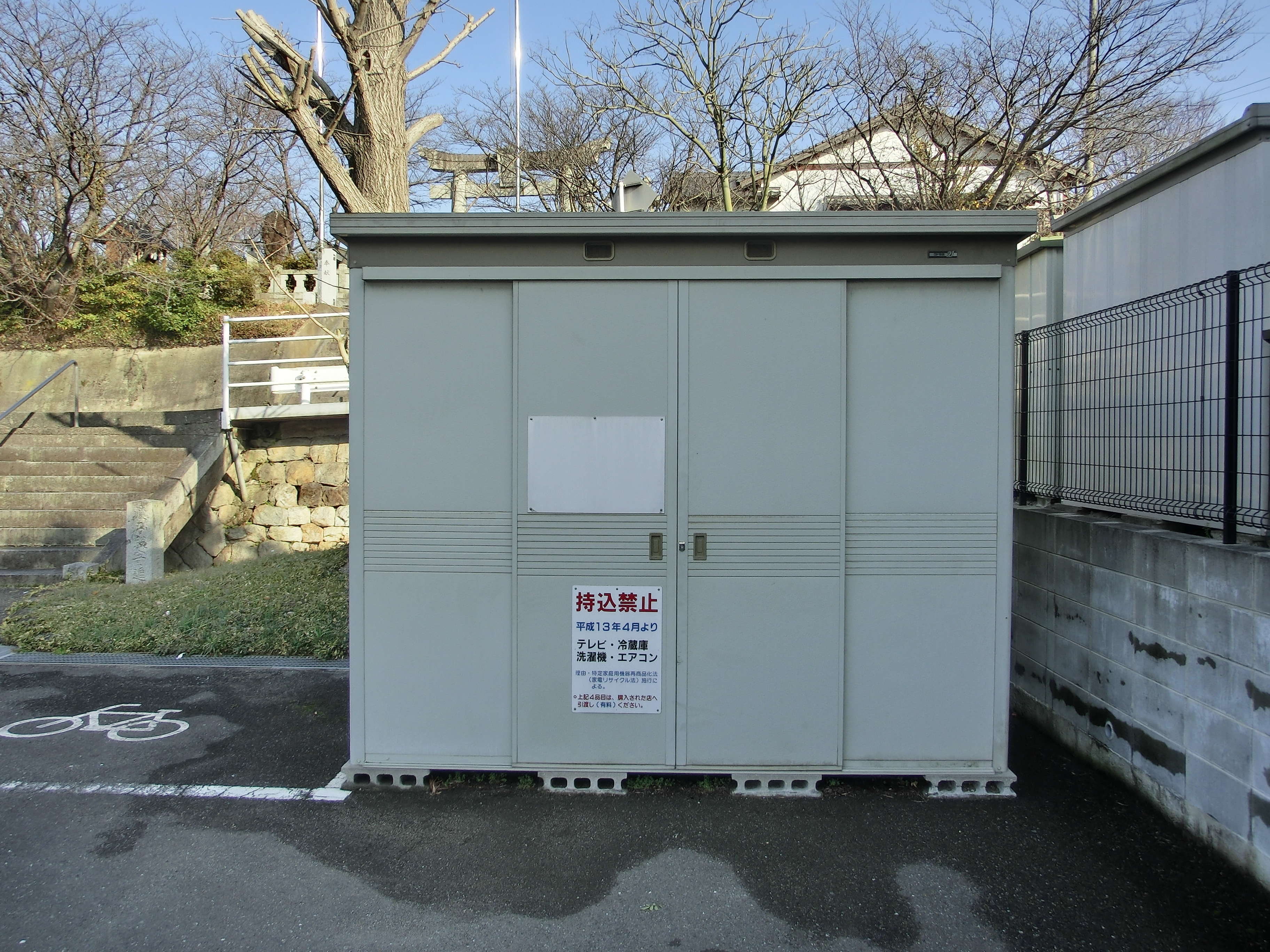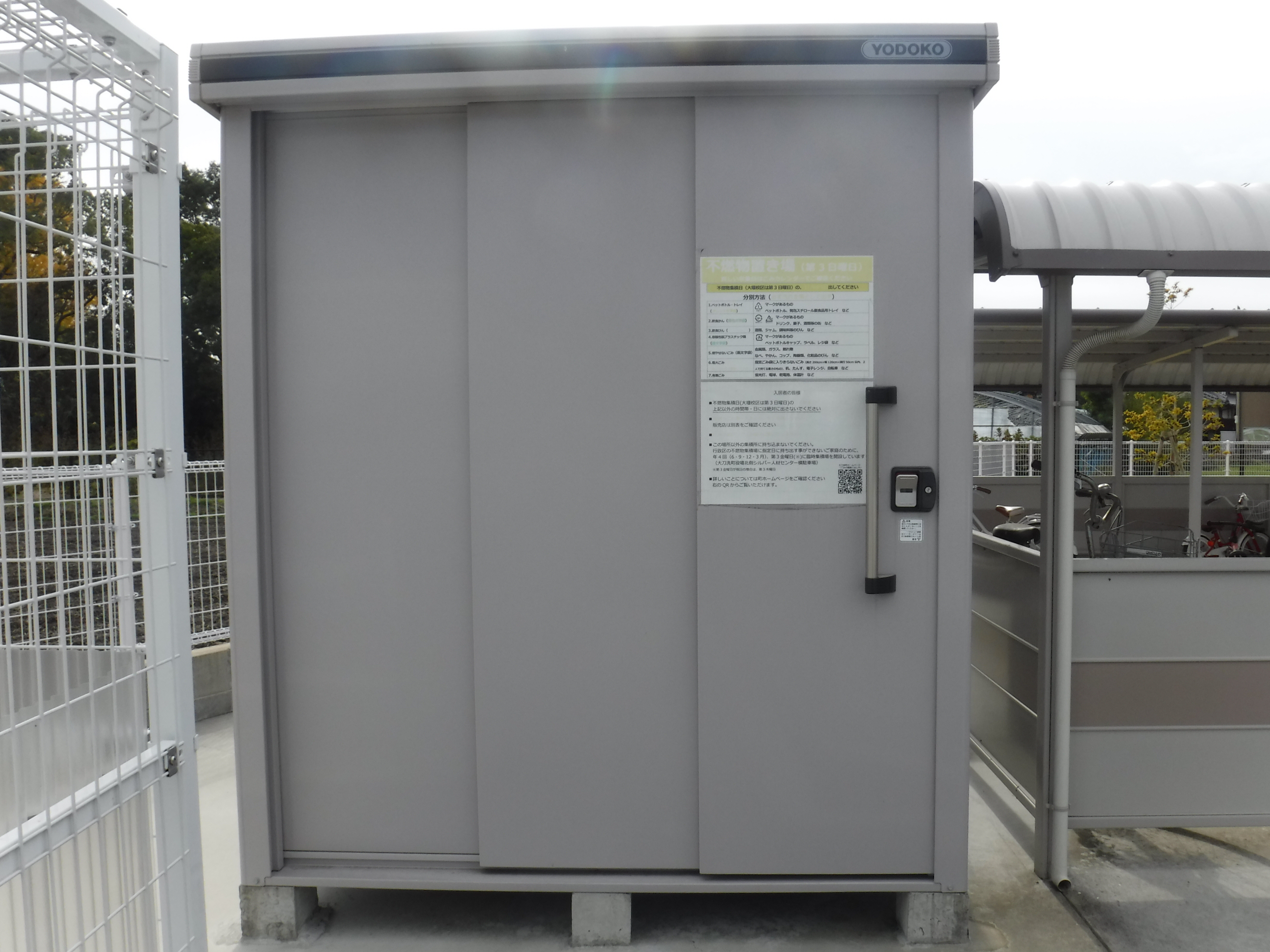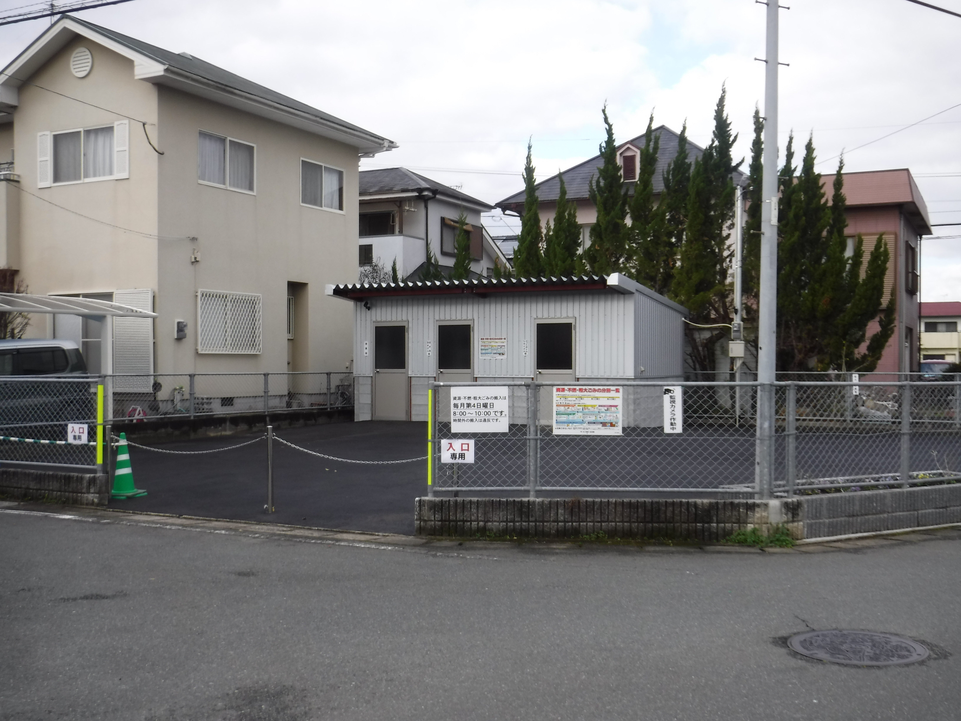 不燃物等集積所(資源ごみ(ペットボトル・トレイ、飲食かん、飲食びん、容器包装プラスチック類)、燃やせないごみ、粗大ごみ、有害ごみはこちらへ出してください)