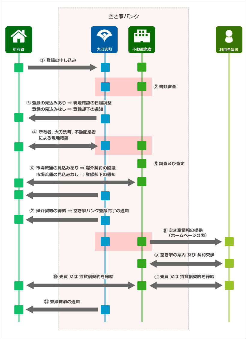 (11)売買・賃貸借契約が成立した物件を空き家バンクから抹消し、大刀洗町が所有者へ通知します。