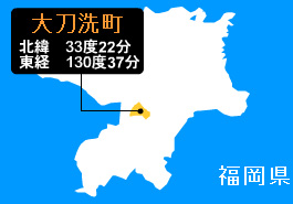 大刀洗町は、福岡県の中南域を占める筑後平野の北東部, 筑後川の中流域北岸に位置します。 総面積は22.84平方キロメートルで、東は朝倉市、南は久留米市、西は小郡市、北は小郡市と筑前町にそれぞれ接しています。