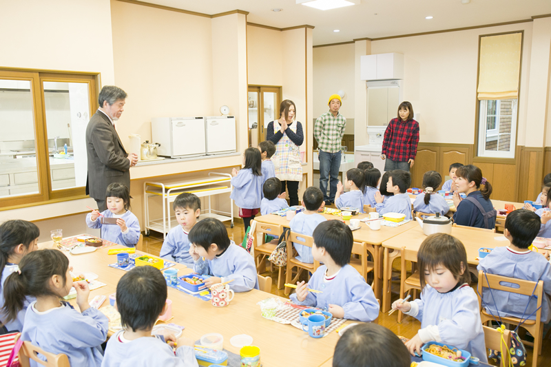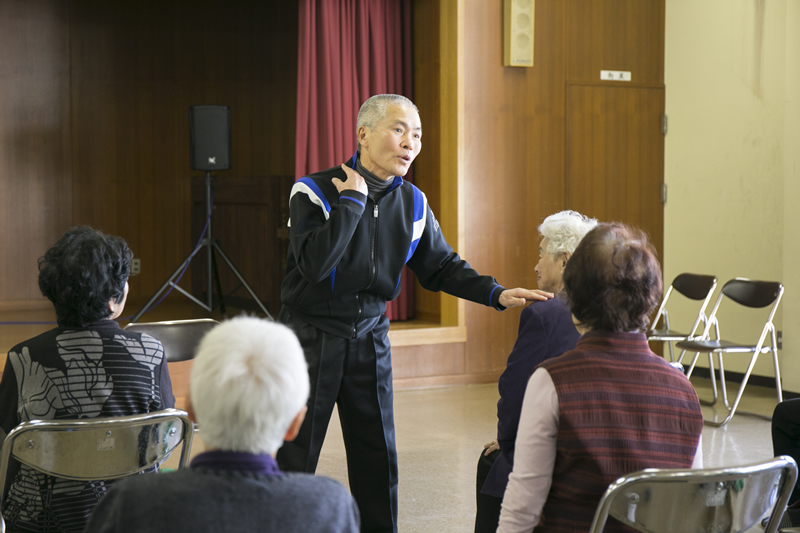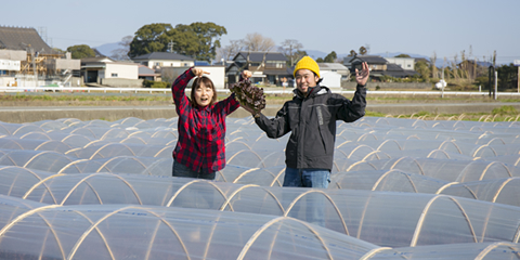 中垣晃博さんと歩く「前略、畑の上から」大刀洗の食と野菜と健康のこと 編 【後編】 最終更新日:2025年3月3日 (ID:881) 印刷 大刀洗で農園「アチコ'sファーム」を営む中垣さん。 野菜作りへの思いをお聞きしながら、最新テクノロジーや人気レストランなど、大刀洗の食を巡る旅へ。 後半は、中垣さんが父親になって初めて意識するようになったという「食と教育」について、母校でもある海の星保育園へ伺いました。 その前に、公民館で何やら賑やかな声が聞こえてきましたよ。 案内する人中垣 晃博さん大刀洗出身。アパレルショップのスタッフから農家に転身。現在では、野菜ソムリエの資格を持ち、サニーレタスやグリーンリーフなどを中心に年間で約50種を栽培。周辺の市場や飲食店へ卸すとともに、毎月第3日曜には「野菜屋アチコ」で直接販売している。プライベートでは3児のパパとしても奮闘中!案内される人ライター 大内食べる事が大好きで、普段はガッツリ肉食女子。野菜不足の生活をどうにかしたいと思ってはいるが、中々実行に移せずじまい。今日は野菜について学びたいと鼻息荒く参加。気張らずに笑顔で続ける健康体操教育というと、中垣さんの中で思い浮かぶ人物がいます。高校時代に体育を学んだ恩師・堀内武美さんです。堀内さんは定年退職後、年配の方にリハビリを取り入れた健康体操を教えているそう。今回は、公民館で開催されているご年配の方向けの教室を見学させてもらいました。中垣さん昔はよく怒られていましたが(笑)時に優しく、時に厳しく、一本ビシッと筋が通った先生でした。 卒業した後も色々と相談にのってもらって。大内ハツラツとした印象ですね。 参加している皆さんも笑顔で楽しそう。中垣さん体がきつい場合は無理をさせない、楽しくできる内容なので、お年寄りにも気軽に取り組めるそうです。堀内先生が体操の合間に放つダジャレに皆さん大笑い!眺めているだけでも楽しい気分になります。こっそりと参加してみると、スクワットも椅子の背を使ったり、合間に深呼吸を取り入れたり、体を動かすのが不自由な方の事をよく考えて構成されているのが分かります。少し取り入れるだけで肩や筋がしっかりとほぐれて体が柔らかくなった感じ。体操教室の後、堀内先生にお話をお聞きしました。大内この体操はどういったきっかけで始められたのですか?堀内さん定年退職した後、地元のために何か貢献したいと思い、民生委員になりました。 初めての活動の時に、高齢者の方をお見かけすると、立ったり歩いたりが大変そうで。 それなら元体育教師だった経験を生かして、簡単な体操ができないかと始めたのがきっかけです。大内大刀洗以外のエリアにも行ってらっしゃるんですか?堀内さん始めてみると色々な地域からご招待を受けるようになって、今では甘木や小郡の方などにも行っています。 高齢者の方がこれから増えてくるので、私にできることがあればと続けています。 今日は最高で90歳の方がいらっしゃいましたよ。中垣さんさっき、公民館の職員さんが、先生の体操は分かりやすくて評判だって教えてくれましたよ。堀内さんそれで、忙しくて大変よ。 引っ張りだこやけん、先生しよった時より忙しいかも(笑)大内堀内さんはかなり積極的に町おこしに取り組んでいらっしゃいますが、何が大事だと思われますか?堀内さん机の上で話し合うより、まずやってみる。 町が良くなるには、思いだけではなくて実行力が必要よね。 そして、それぞれ自分ができる事で地域に恩返しできたら、すごいよね。中垣さん自分ができる事で町おこしをするという事ですね。大内中垣さんが野菜を作っていらっしゃることについてはどう思われますか?堀内さん(間髪入れずに)そりゃ、偉いよっ!偉い! 大刀洗の名物の野菜を作ってるんだから、すごい事だと思うよ。 今から色々な試練があるかもしれないけれど、乗り越えていく事で成長できる。 「大刀洗の野菜を食べてよかった」と思ってもらえるような野菜を作って、ゆくゆくは町おこしの担い手としても頑張ってほしいね。大内今でも生徒の事は気になりますか? 相談されるとか?堀内さんそうですね。 最近はなかなか忙しいけど、飲みに行ったりしたいね。中垣さん今はお休みないですもんね。大内地域貢献といえば、今、食と教育について考えているのですが、 元教師でいらっしゃる堀内さんから見て、どんな取り組みが大事だと思われますか?堀内さん今は、大刀洗では高齢者と小学生が一緒に花や野菜を植えたり、地域の行事に参加したりといった交流しています。 それに大刀洗で作った野菜を給食で出して、小さい時から食に関して関心を持ってもらうことも大切。 地域と行政が現場で取り組んでいかないとね。中垣さん小学校くらいの時期は特に大切ですよね。堀内さんそうそう。 だから野菜を作っている中垣くんの力が必要。大内じゃあ、中垣さんには大いに期待されているという。堀内さんもちろん